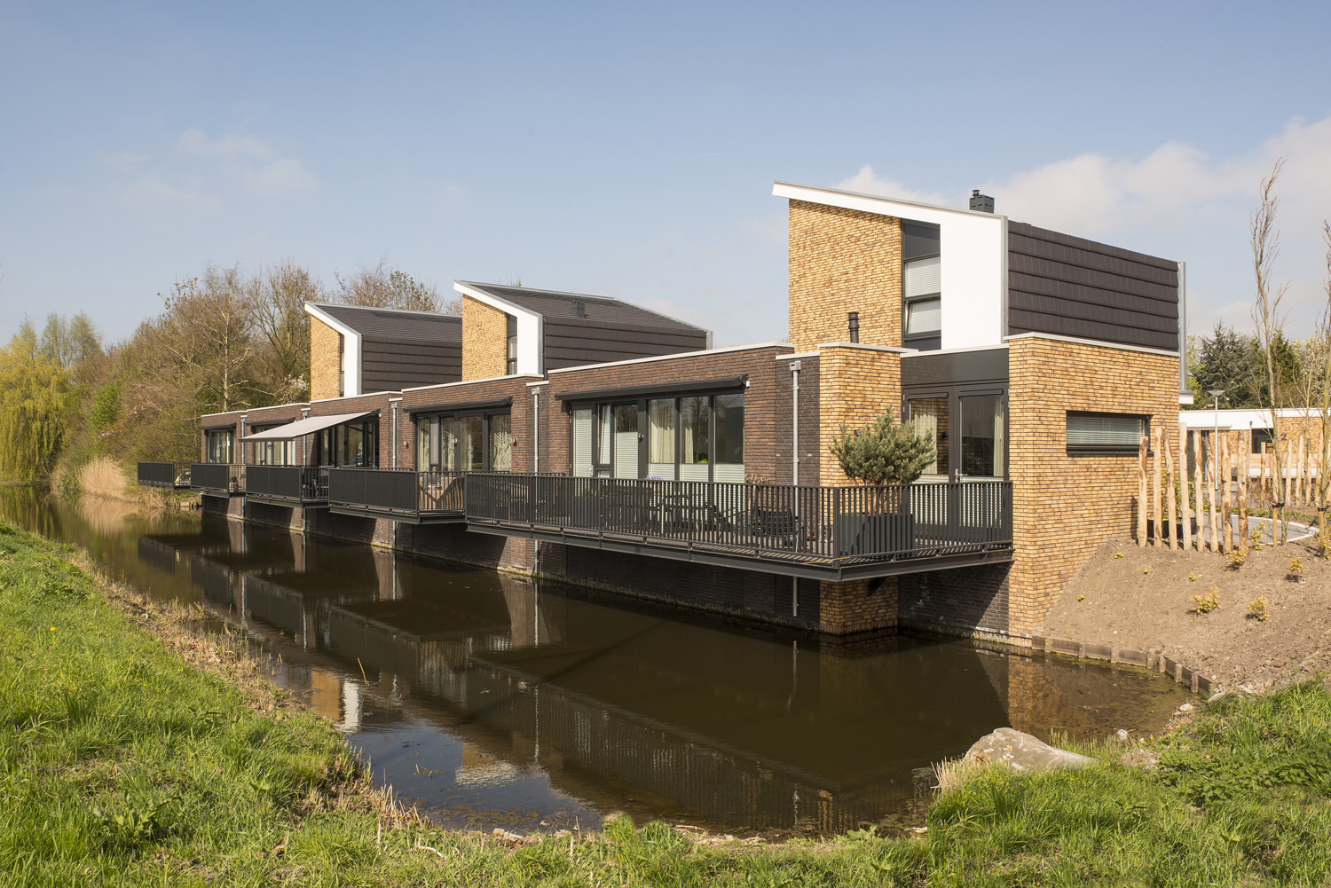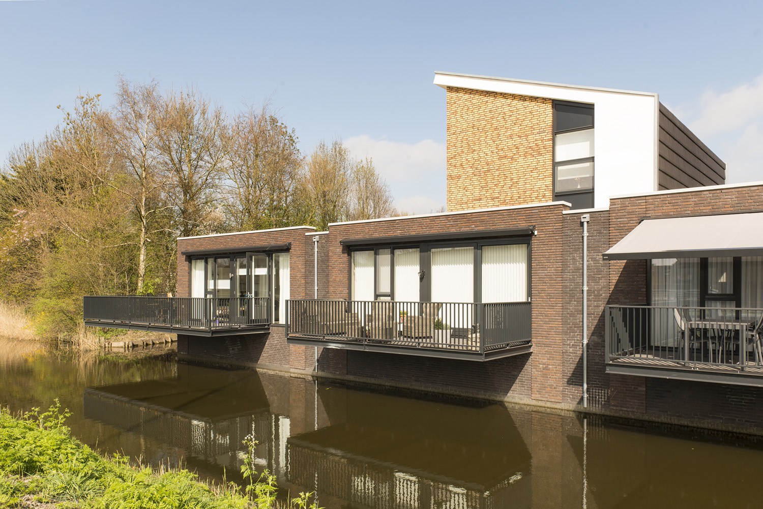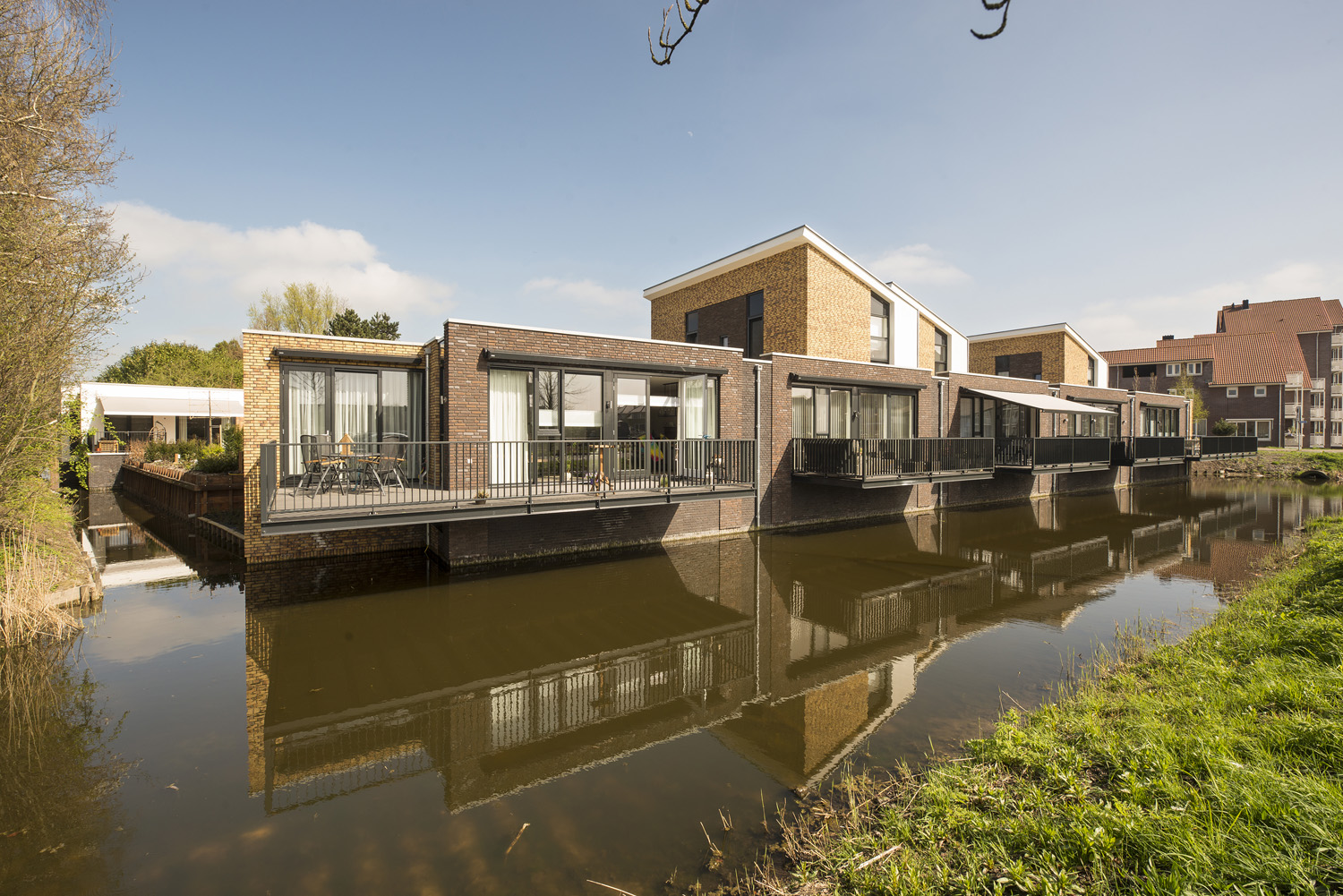 De twee gebouwen vormen samen een kleinschalig en gezellig binnenhof, speciaal ontworpen voor comfortabel en levensloopbestendig wonen. Iedere woning heeft een sterke relatie met buiten: vijf woningen beschikken over een intieme, private patio, terwijl vijf andere woningen een ruim terras hebben dat uitkijkt over het water. Architectonisch worden de gebouwen gedragen door een robuust metselwerkbasement, waarop kopers zelf konden kiezen uit diverse opbouwen. Dit levert een gevarieerd en persoonlijk gevelbeeld op, terwijl de eenheid van het ensemble behouden blijft.