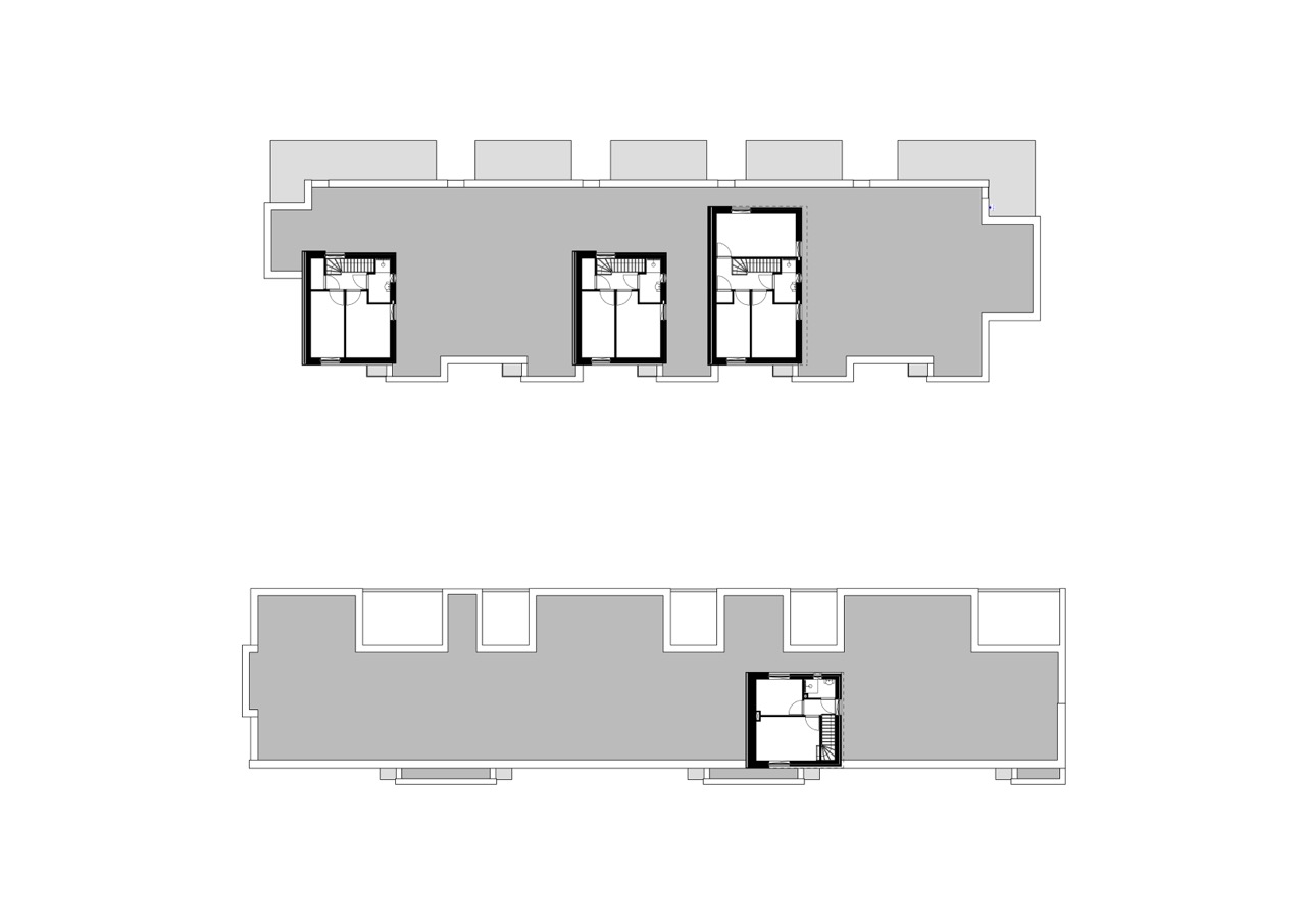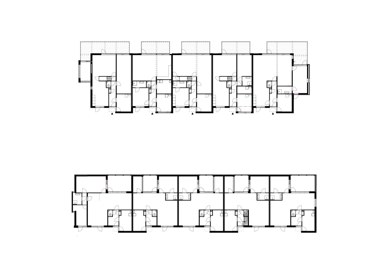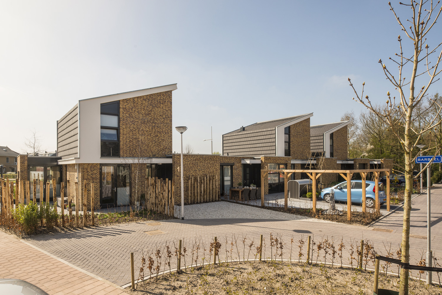 De twee gebouwen vormen samen een kleinschalig en gezellig binnenhof, speciaal ontworpen voor comfortabel en levensloopbestendig wonen. Iedere woning heeft een sterke relatie met buiten: vijf woningen beschikken over een intieme, private patio, terwijl vijf andere woningen een ruim terras hebben dat uitkijkt over het water. Architectonisch worden de gebouwen gedragen door een robuust metselwerkbasement, waarop kopers zelf konden kiezen uit diverse opbouwen. Dit levert een gevarieerd en persoonlijk gevelbeeld op, terwijl de eenheid van het ensemble behouden blijft.