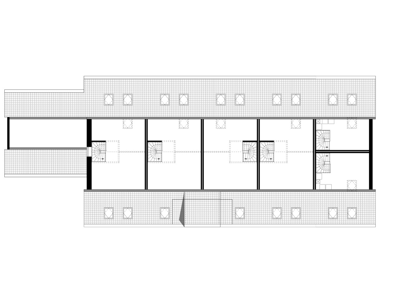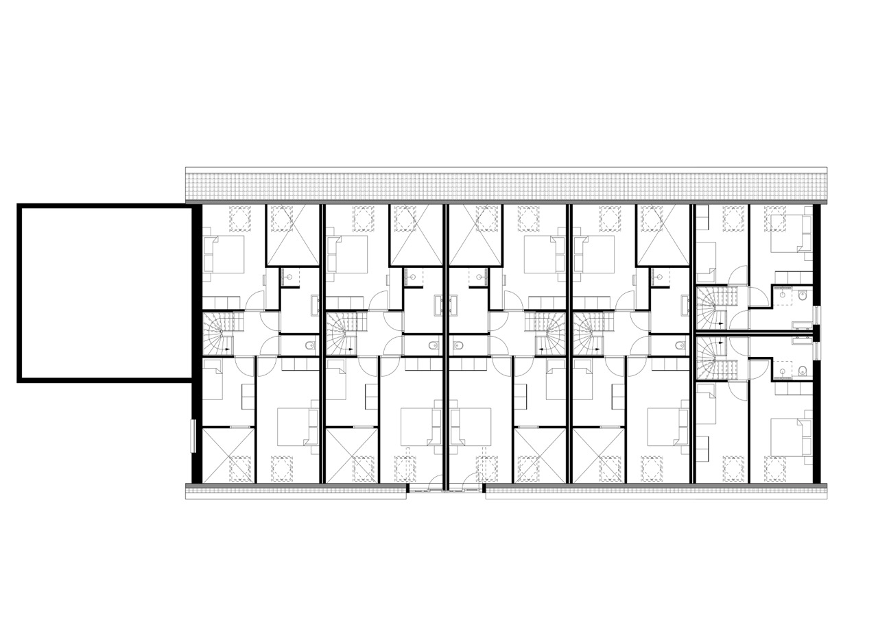 – twee woningen gecombineerd met de 14 bergingen in de ‘paardenstal’ achter op het erf, uitgevoerd in zwarte gepotdekselde delen die de typologie van het erf op een hedendaagse manier voortzetten.