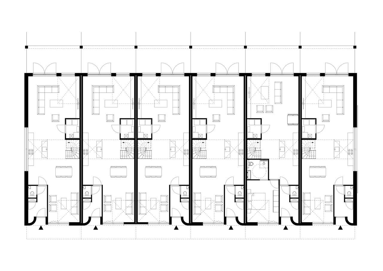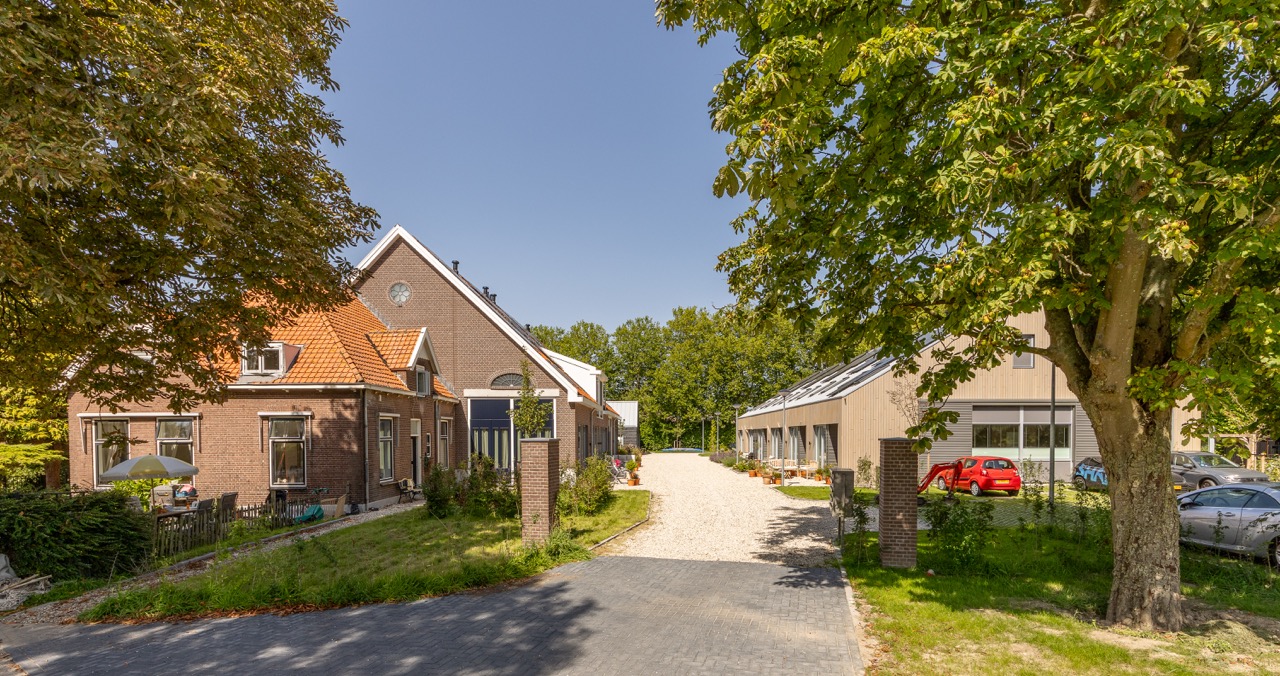 – zes woningen in de ‘bestaande’ schuur, die volledig is herbouwd maar qua vorm, materialisatie en kleur aansluit bij de gerenoveerde boerderij aan de dijk;