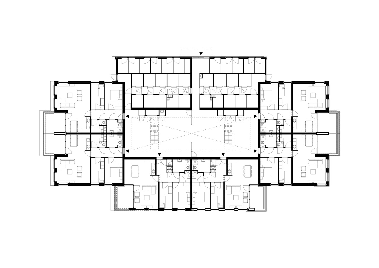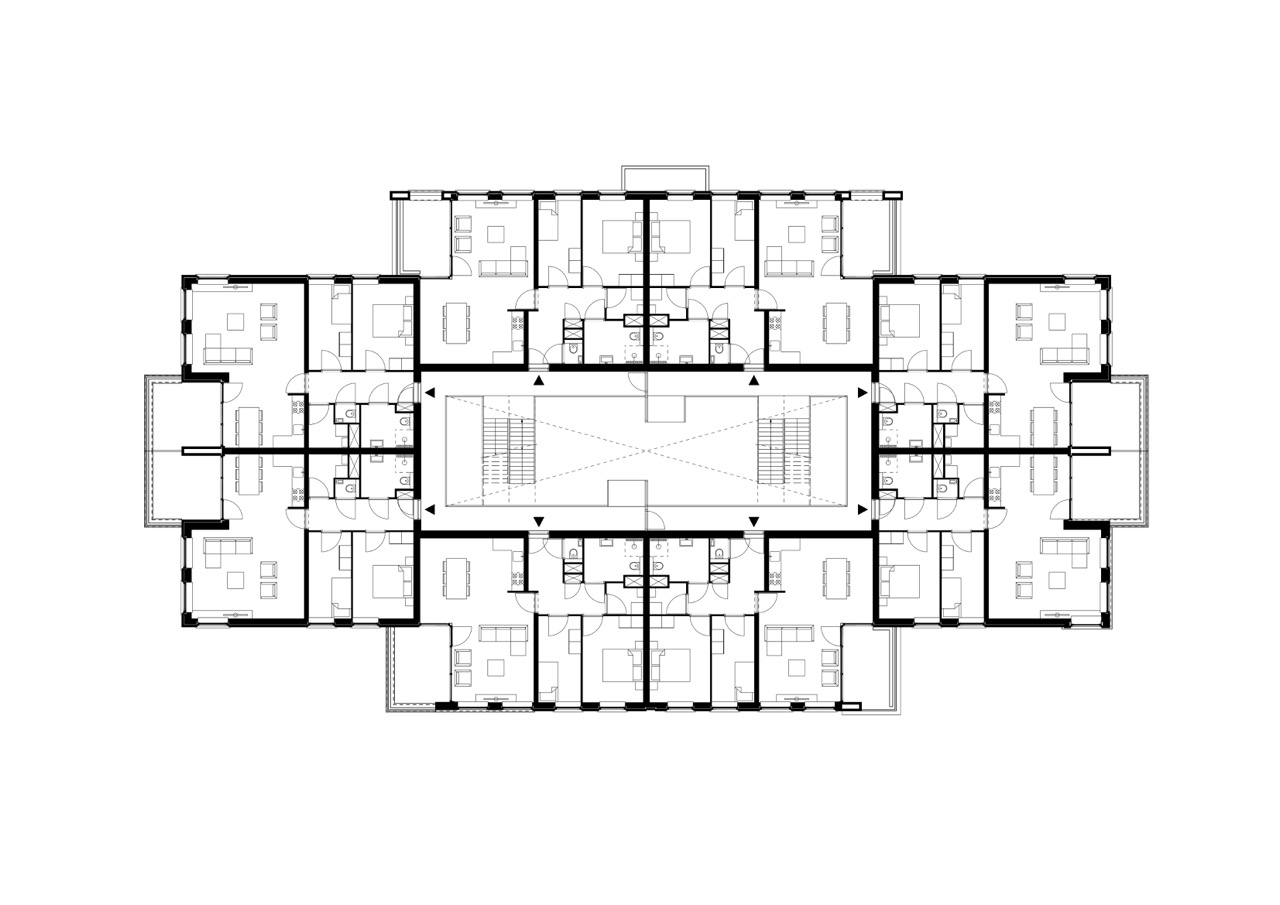 Op deze manier is de rand van de wijk open gemaakt naar de omgeving toe zodat er meer transparantie en binding met de omliggende wijken is ontstaan. Het appartementengebouw is ontworpen rondom een open en licht atrium met grote vides teneinde een prettige gemeenschappelijke ruimte te creëren. Het gebouw is alzijdig ontworpen zodat er rondom representatieve voorgevels zijn ontstaan.