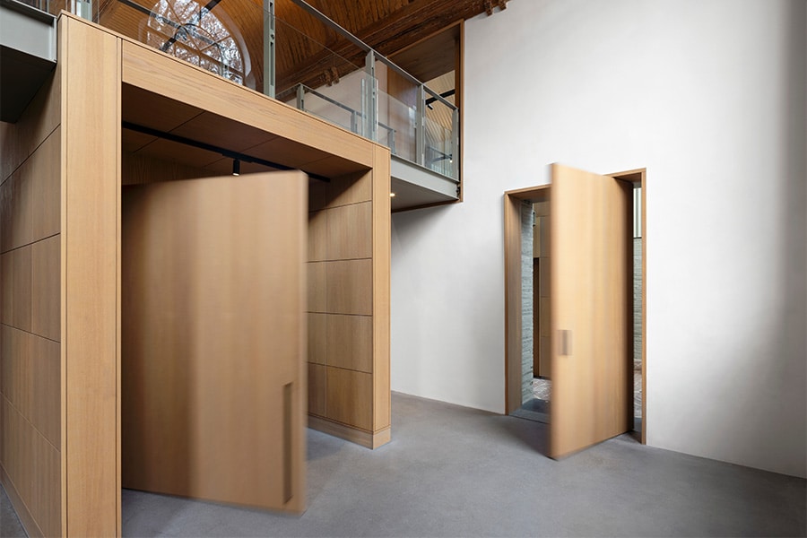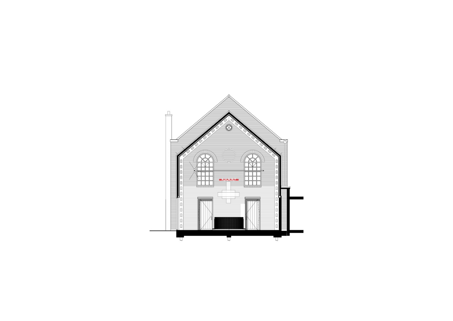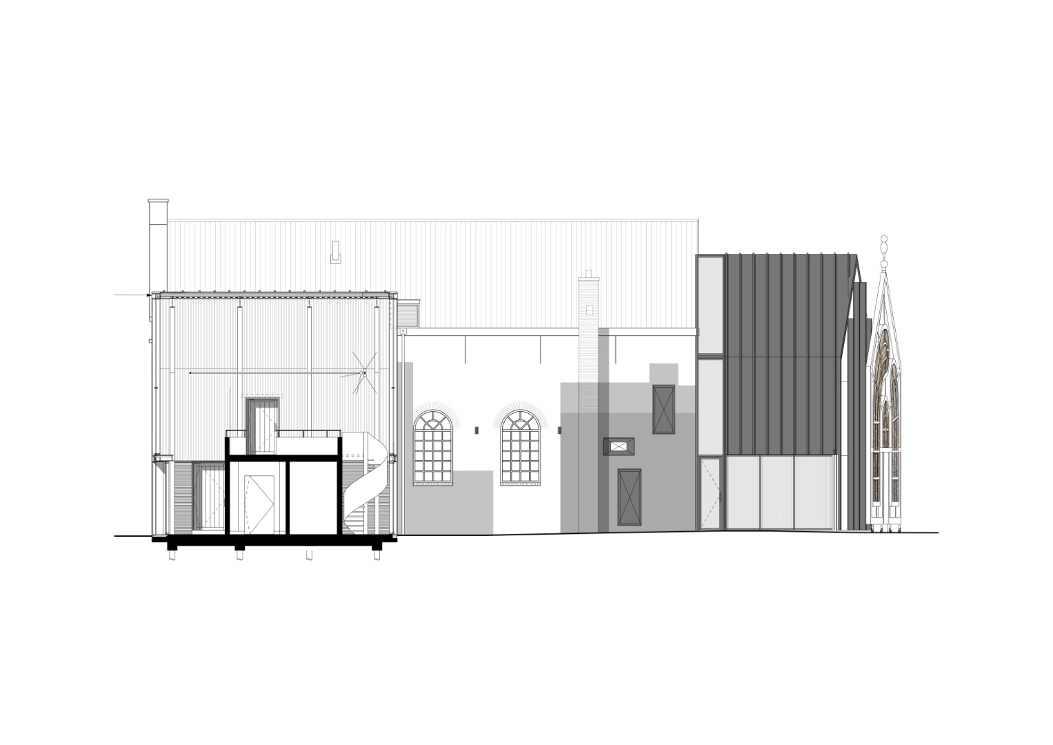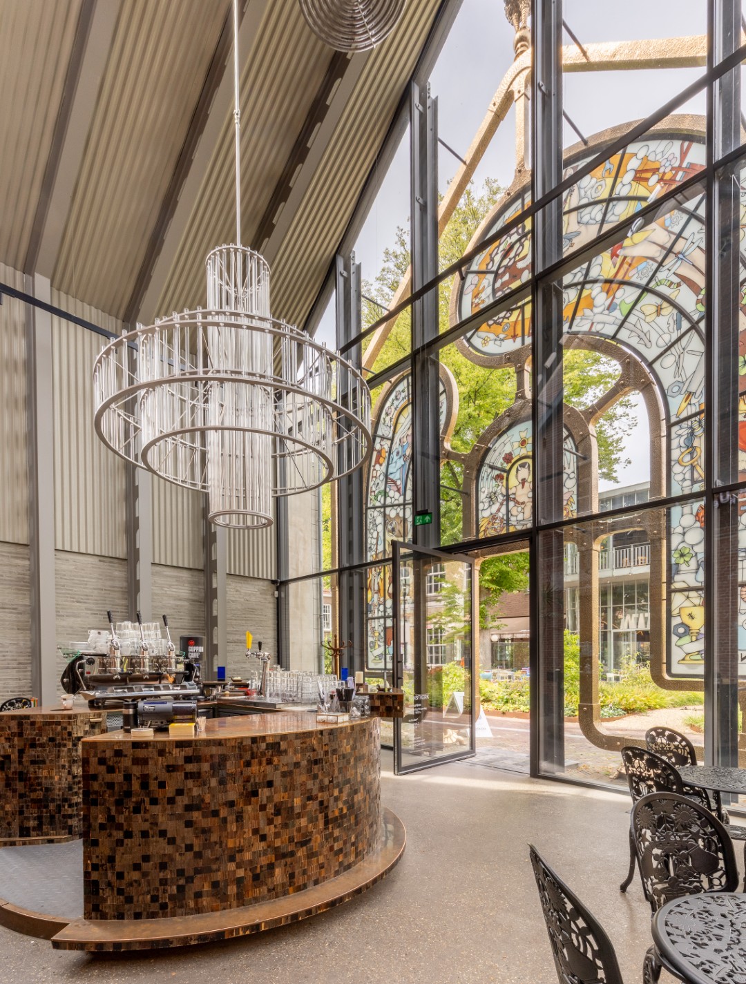 De essentie van het ontwerp ligt in het respecteren van het oorspronkelijke volume en de ruimtelijke monumentaliteit van de kerkzaal. De hoge gewelven, de ritmiek van de gevels en de baksteenarchitectuur vormen het decor voor een flexibel en toekomstbestendig interieur. Nieuwe toevoegingen zijn bewust ingetogen vormgegeven, zodat oud en nieuw elkaar versterken zonder hiërarchie.